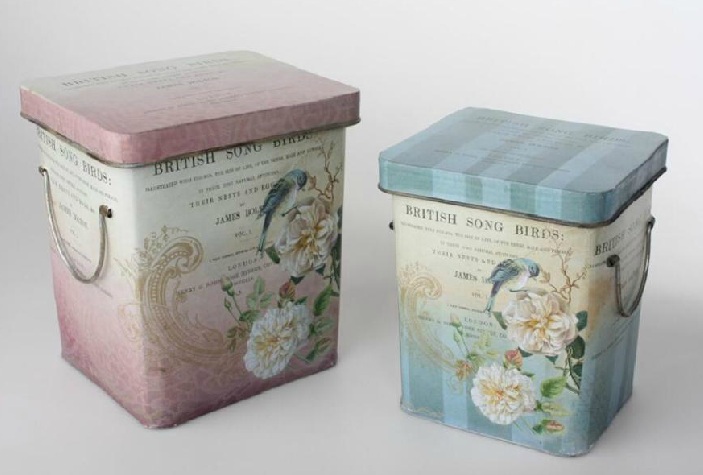 Sobre paredes en tonos claros, lo importante es resalta los complementos y accesorios tales como cajas de madera reciclada, cestas de mimbre y latas al estilo vintage que, además, aportan a la estancia un ambiente bohemio y romántico.